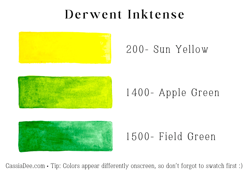 List of all Derwent Inktense pencils used in this palette: