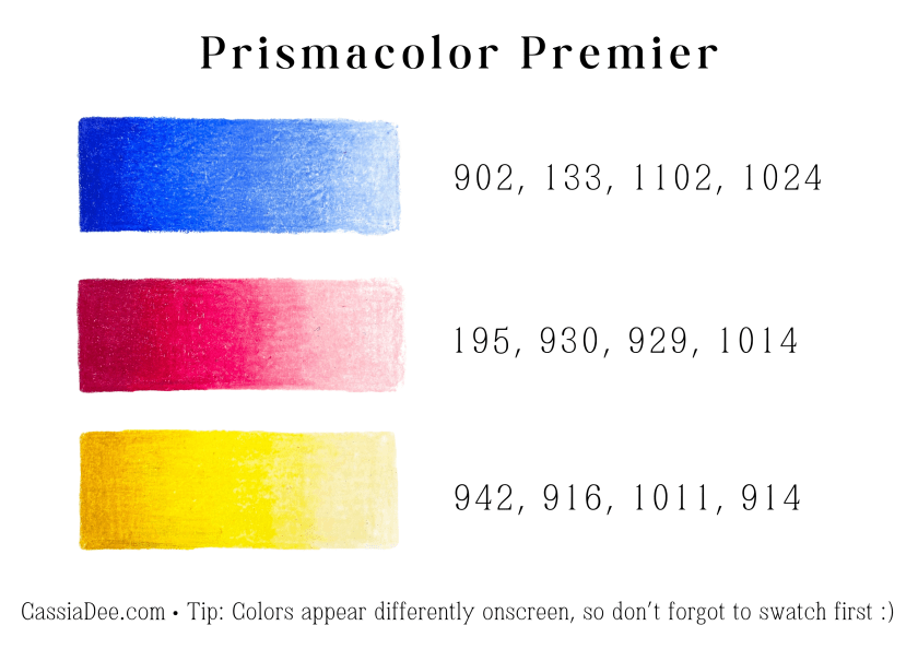 List of all Prismacolor Premier pencils used in this palette: