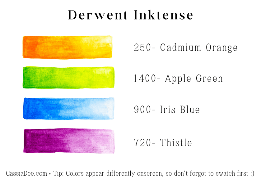 List of all Derwent Inktense pencils used in this palette: