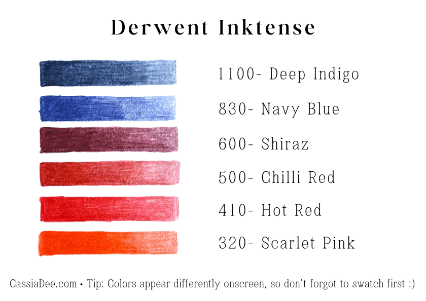List of all Derwent Inktense pencils used in this palette: