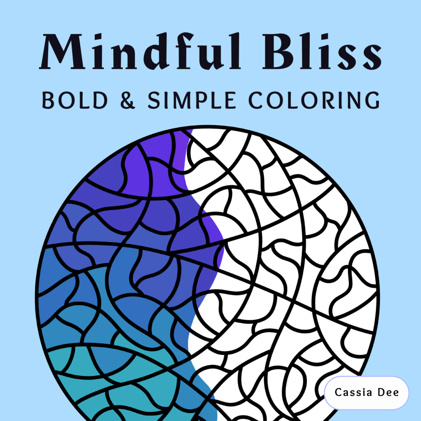 Mindful Bliss is perfect for people looking to color something extra relaxing, but who aren’t looking for a zendoodle book. It includes bold & simple versions of each page, as well as a more detailed version with less thick line art to accommodate different coloring preferences and abilities.